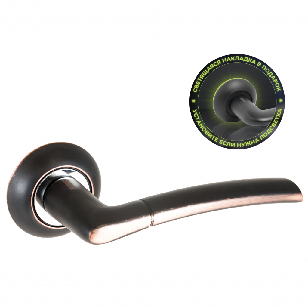Ручка на круглой накладке для дверей толщиной 34-45 мм В комплекте идут пластиковые накладки с люминофором, которые светятся в темноте!!!