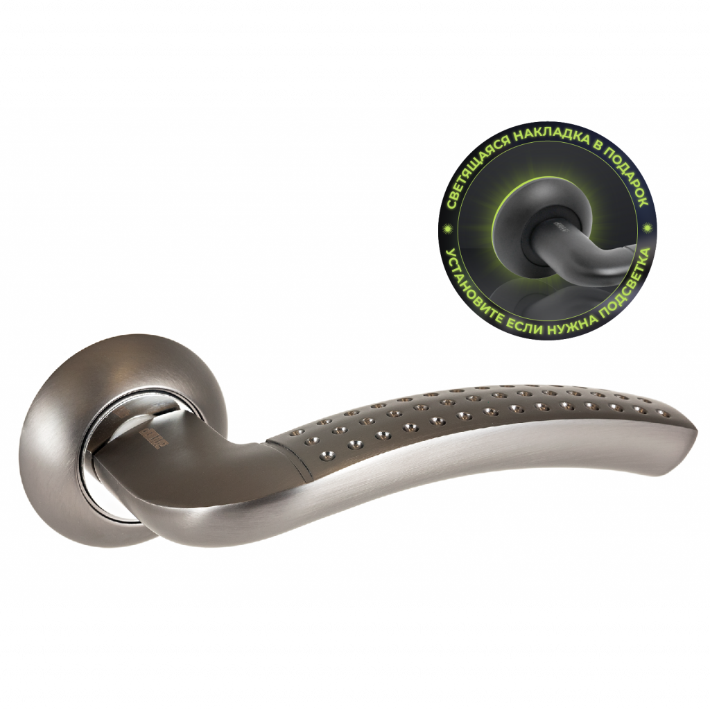 Ручка на круглой накладке для дверей толщиной 34-45 мм В комплекте идут пластиковые накладки с люминофором, которые светятся в темноте!!!