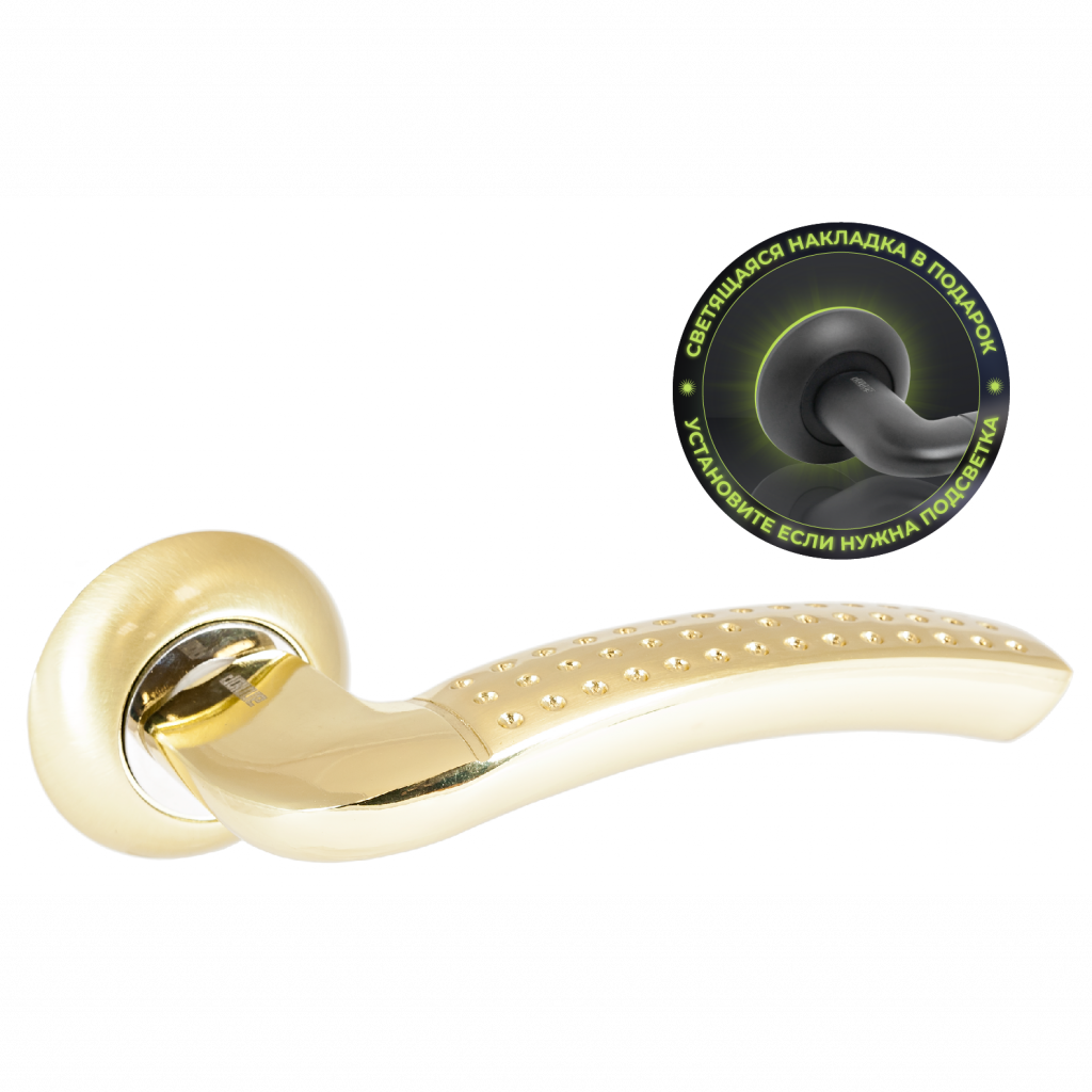 Ручка на круглой накладке для дверей толщиной 34-45 мм В комплекте идут пластиковые накладки с люминофором, которые светятся в темноте!!!