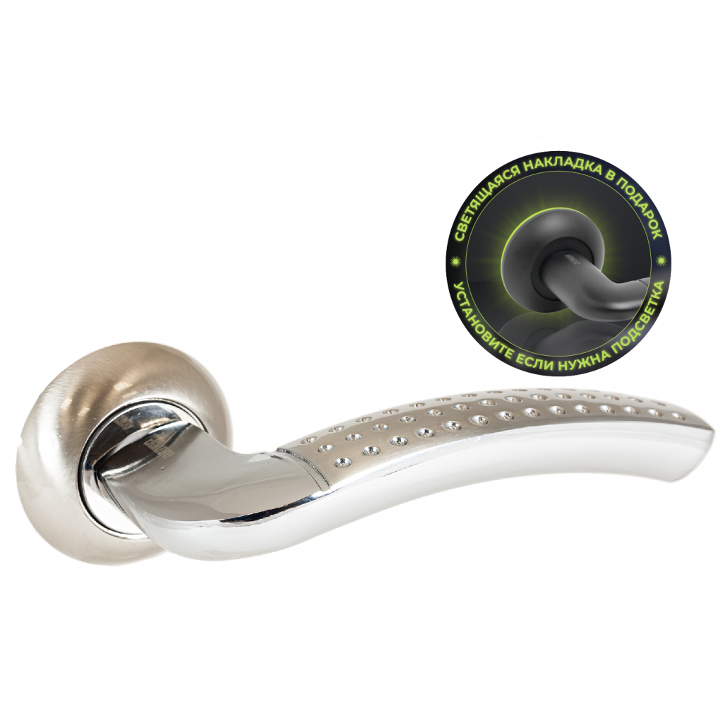 Ручка на круглой накладке для дверей толщиной 34-45 мм В комплекте идут пластиковые накладки с люминофором, которые светятся в темноте!!!