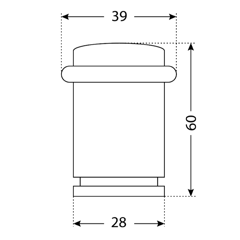 Ограничитель/упор дверной напольный имеет цилиндрическую форму.