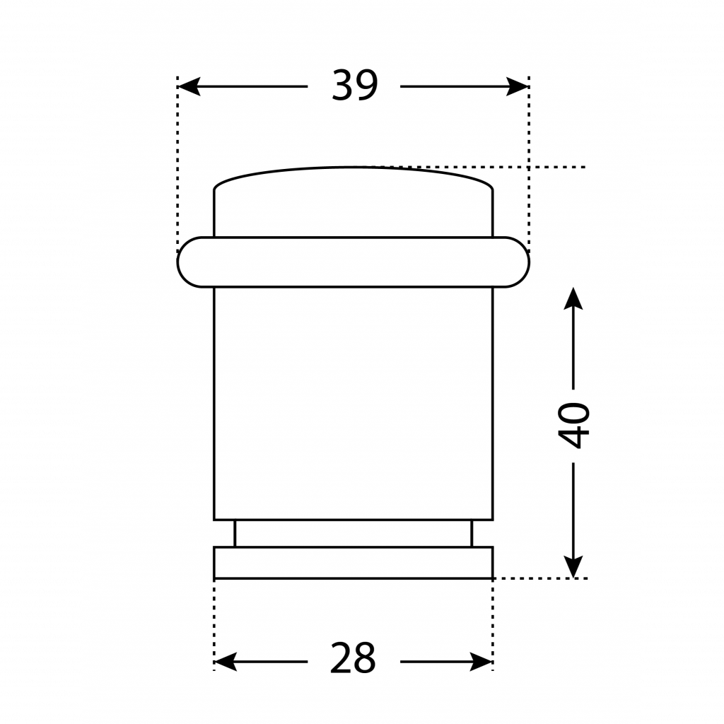 Ограничитель/упор дверной напольный имеет цилиндрическую форму.
