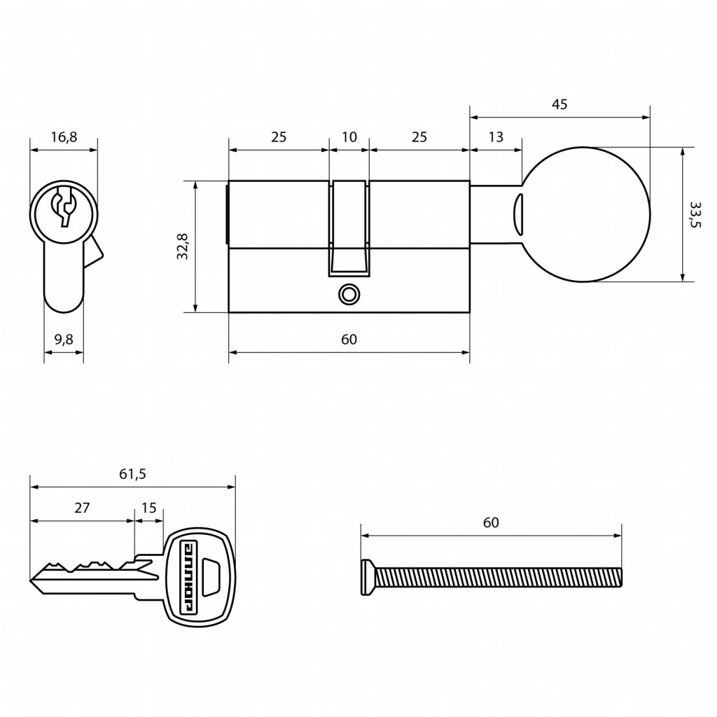 Механизм цилиндровый для врезных замков с 5 пинами секретности. Английский ключ. Ключ-вертушка.