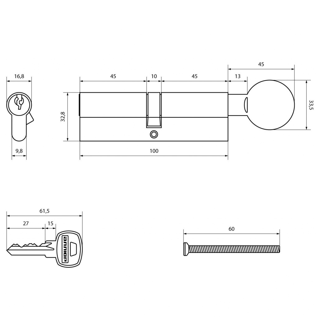 Механизм цилиндровый для врезных замков с 5 пинами секретности. Английский ключ. Ключ-вертушка.