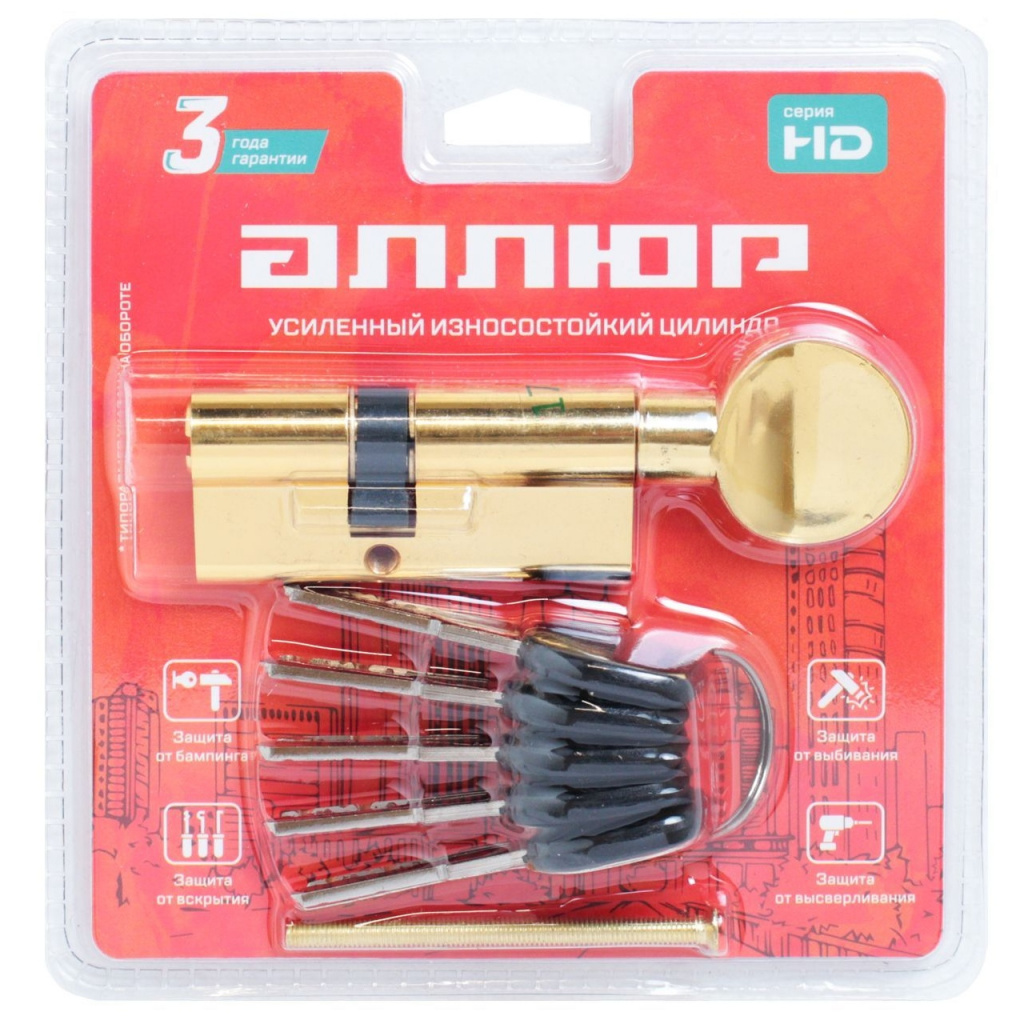 Механизм защищен от высверливания, вскрытия бампингом и отмычками. Выступающий на 30 градусов из плоскости механизма кулачок защищает цилиндр от выбивания из двери.