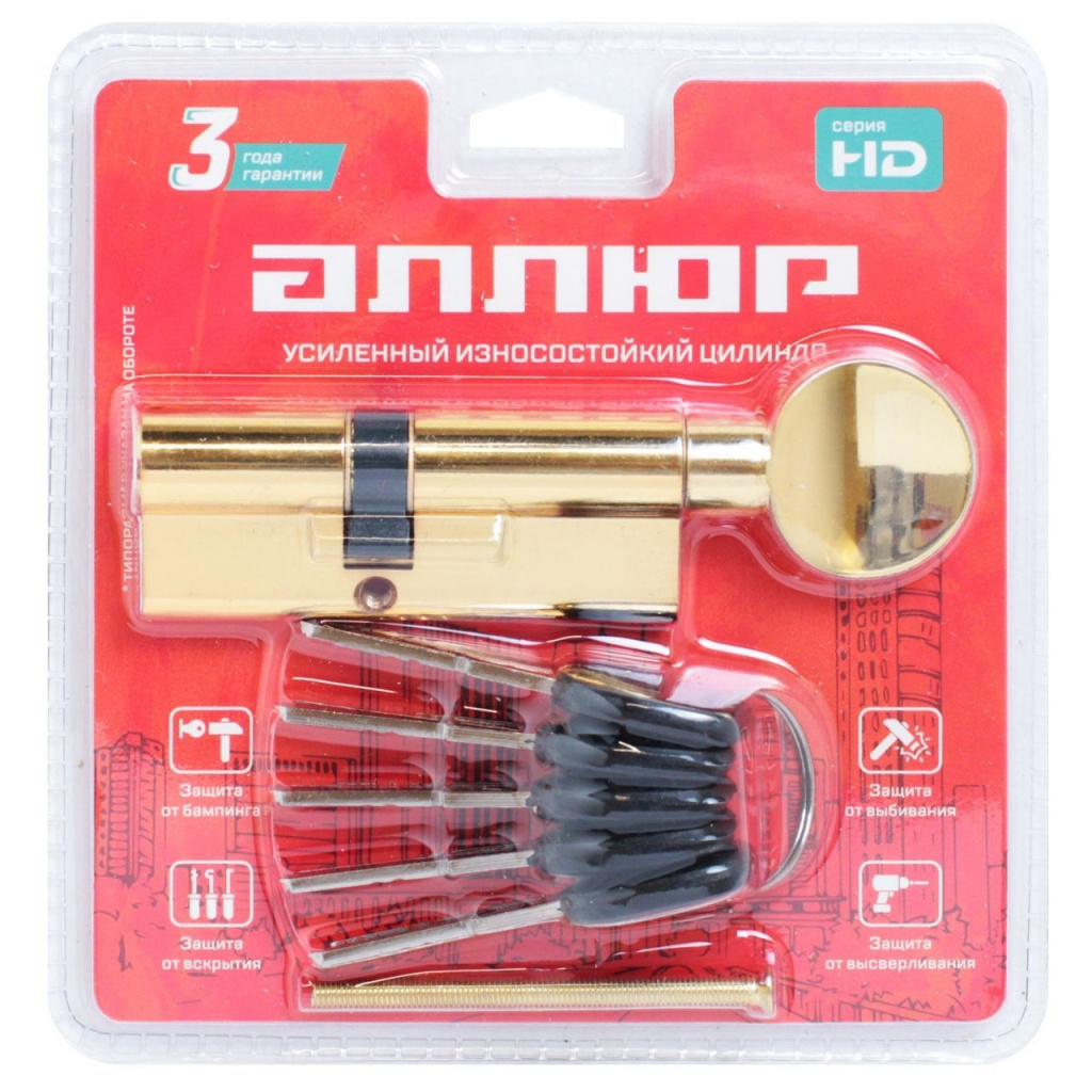 Механизм защищен от высверливания, вскрытия бампингом и отмычками. Выступающий на 30 градусов из плоскости механизма кулачок защищает цилиндр от выбивания из двери.