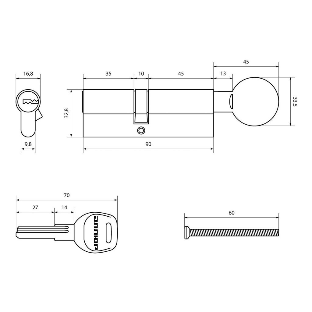 Механизм цилиндровый для врезных замков с 7 пинами секретности. Европрофиль. Перфо-ключ имеет 45000 секретных комбинаций. Ключ-вертушка.