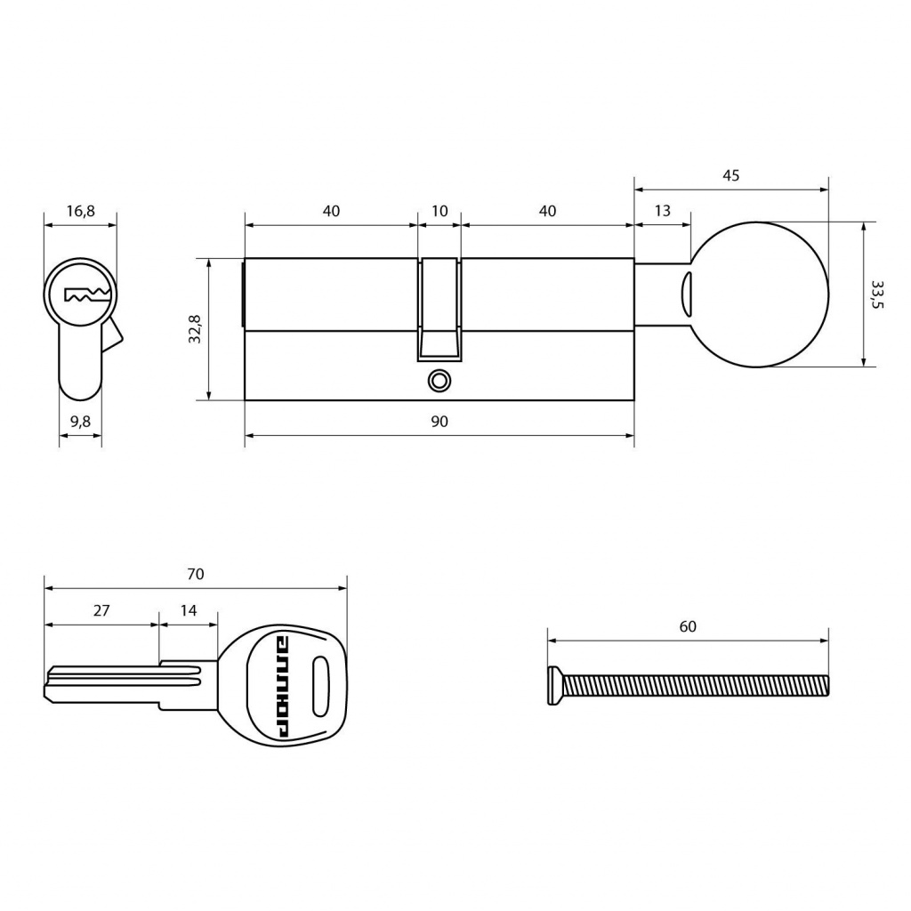 Механизм цилиндровый для врезных замков с 7 пинами секретности. Европрофиль. Перфо-ключ имеет 45000 секретных комбинаций. Ключ-вертушка.