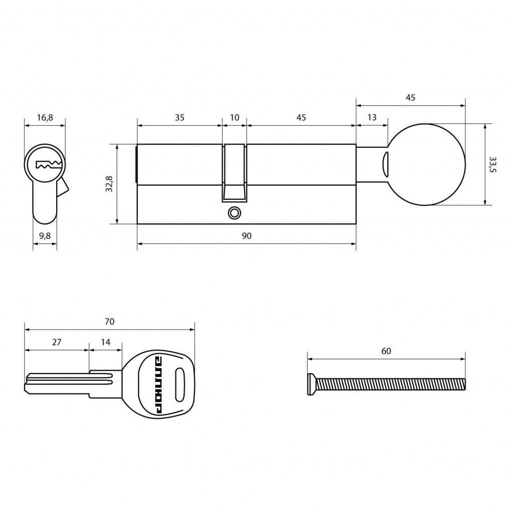 Механизм цилиндровый для врезных замков с 7 пинами секретности. Европрофиль. Перфо-ключ имеет 45000 секретных комбинаций. Ключ-вертушка.