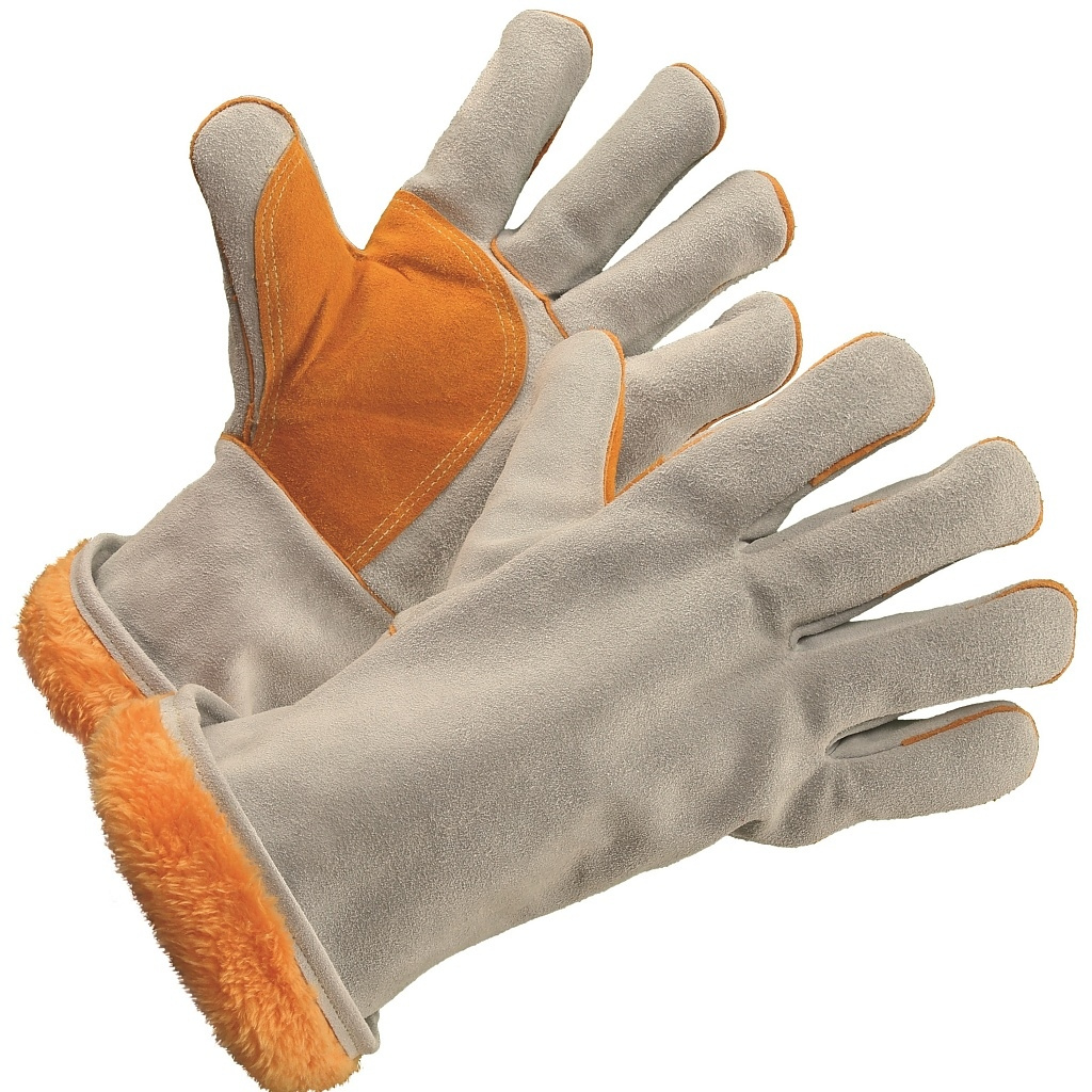 Изготовлены из спилка КРС класса А толщиной 1,2 -1,4 мм. Утеплитель искусственный мех. Швы усилены вставками из кожи. Рабочая поверхность ладони и большого пальца усилена накладкой из спилка. Двойные швы. Прошиты кевларовой нитью.