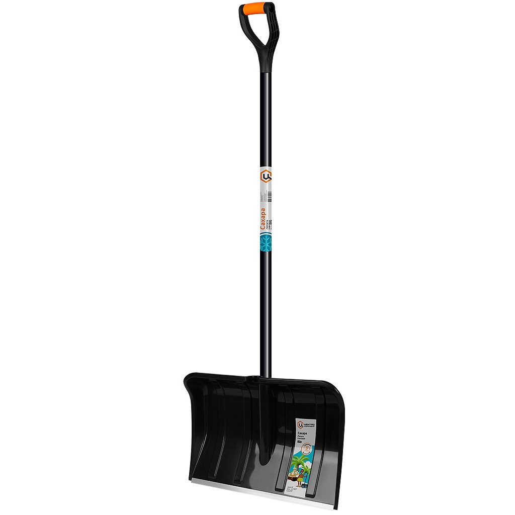 Лопата снеговая с деревянным черенком и полотном из ударопрочного морозостойкого пластика с алюминиевой окантовкой.