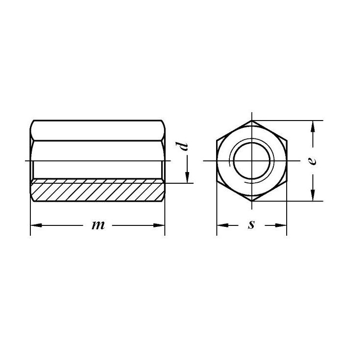 Соединительная удлиненная гайка применяется для конструкционного соединения резьбовых частей болтов, шпилек и т.д. в машиностроении, приборостроении и строительстве в качестве детали соединения