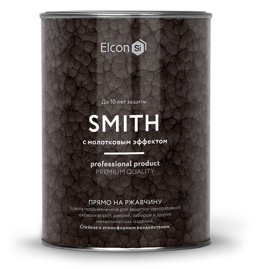 Краска Elcon Smith с молотковым эффектом предназначена для долговечной окраски металлических поверхностей снаружи и внутри помещений. Краску можно наносить на прокорродировавшую поверхность сразу после удаления рыхлой ржавчины. Компоненты, входящие в состав краски, преобразуют ржавчину в прочный защитный слой, препятствуют дальнейшей коррозии и образуют на поверхности металла прочное атмосферостойкое покрытие.