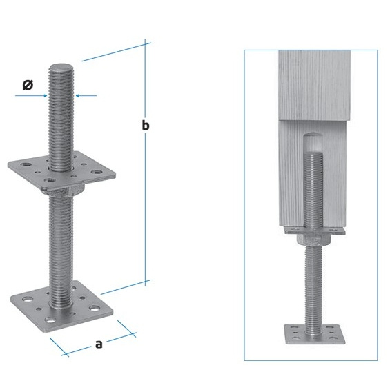Стойка регулировочная применяется для компенсации усадки деревянного дома; использование стойки позволяет избежать нарушения горизонтального уровня конструкции; также регулировочная стойка способствует защите основания от сырости и влаги.