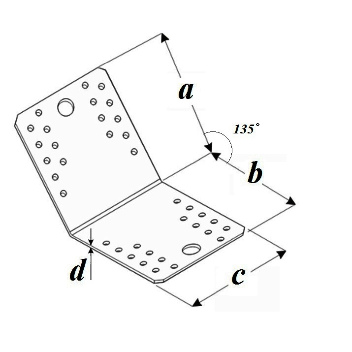 Уголок соединительный KLR предназначен для соединения деревянных элементов под углом 135°, выполнения подкосов, укосин или диагонального усиления рамных элементов.