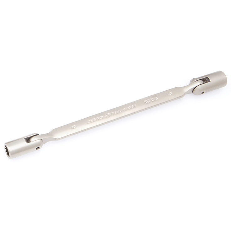 Шарнирный двусторонний ключ представляет собой неразборный вариант привода и удлинителя с шарнирной двенадцатигранной торцовой головкой (угол наклона 180°).