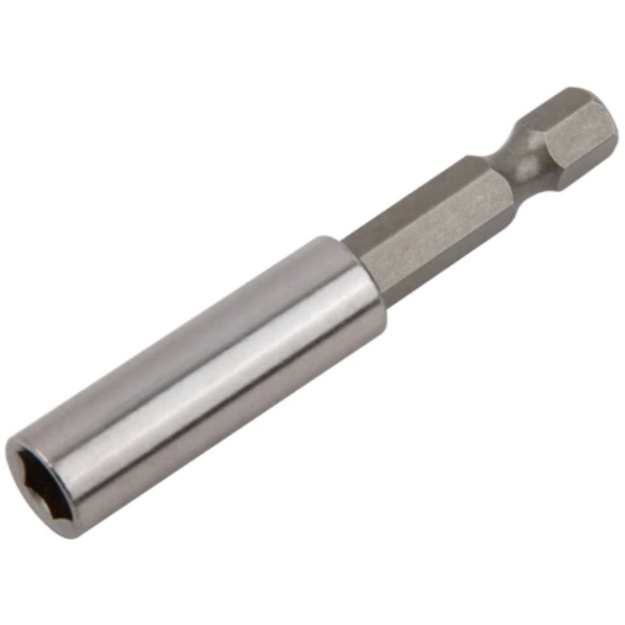 Адаптер магнитный для бит предназначен для смен вставок бит в шуруповерте, дрели и т.д. Благодаря наличию магнита бита надежно удерживается в гнезде держателя и позволяет менять различные биты одним движением и без обязательной фиксации зажимным патроном.
