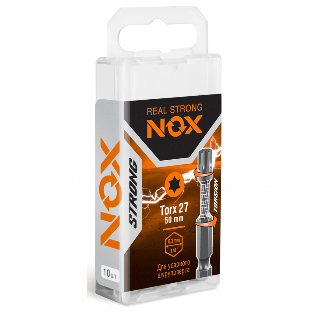 Торсионная бита для ударного шуруповерта с высоким ресурсом торговой марки NOX Strong от компании "Тулфор" выполнена из высококачественной стали.
