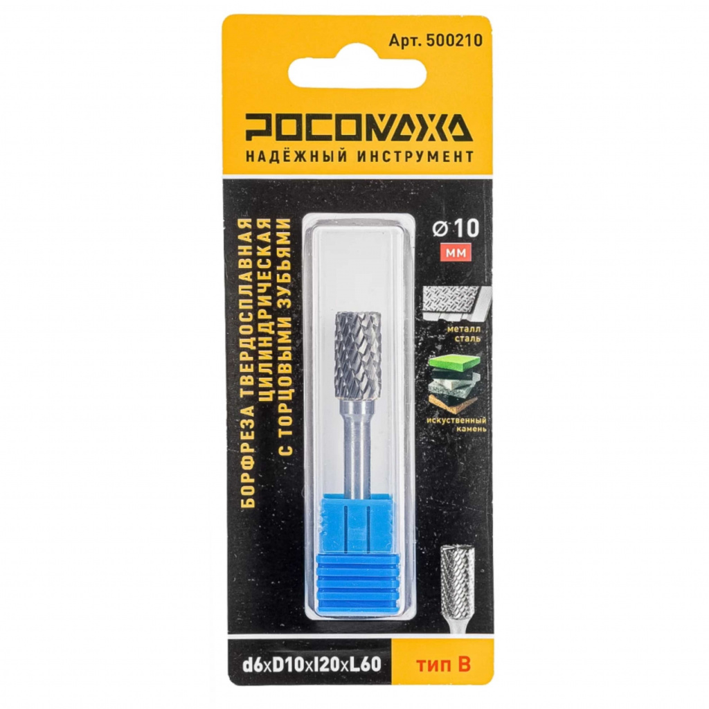 Борфреза твердосплавная цилиндрическая с торцовыми зубьями РОСОМАХА тип В предназначена для прямошлифовальных машин.