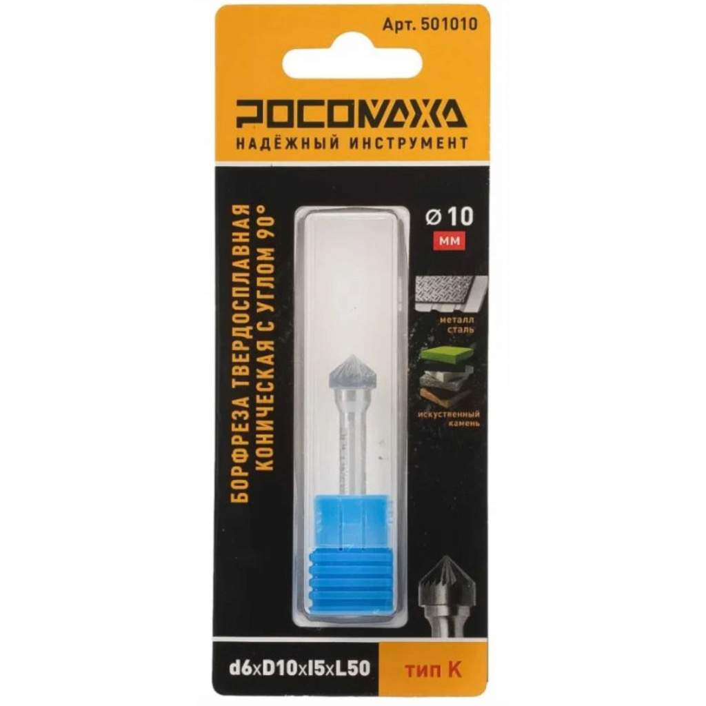 Борфреза твердосплавная коническая с углом 90° РОСОМАХА тип К предназначена для прямошлифовальных машин.