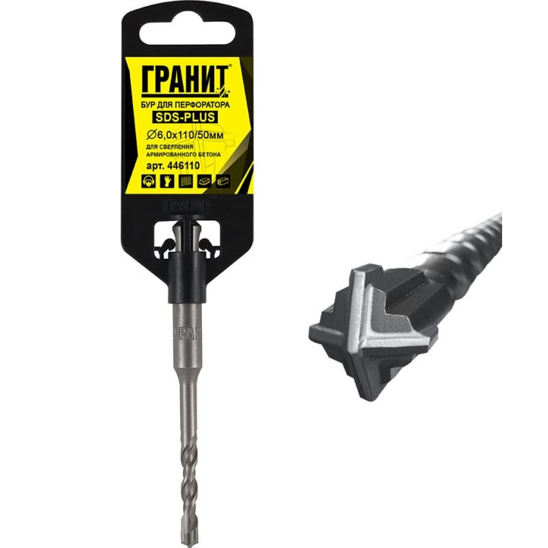 Бур ТМ ГРАНИТ предназначен для перфораторов с системой крепления SDS+. Применяется для сверления глухих и сквозных отверстий в камне, кирпичной кладке, бетоне и железобетоне.
