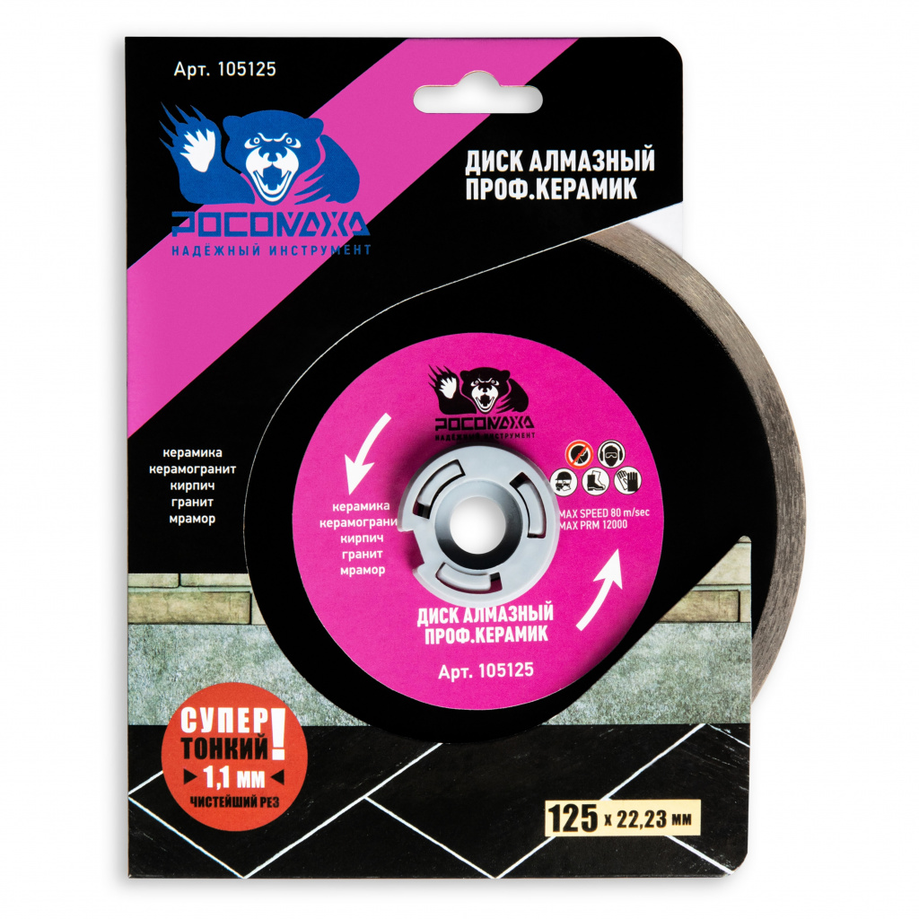 Алмазный диск супер тонкий РОСОМАХА со сплошным сегментом предназначен для работ по керамике и керамограниту.