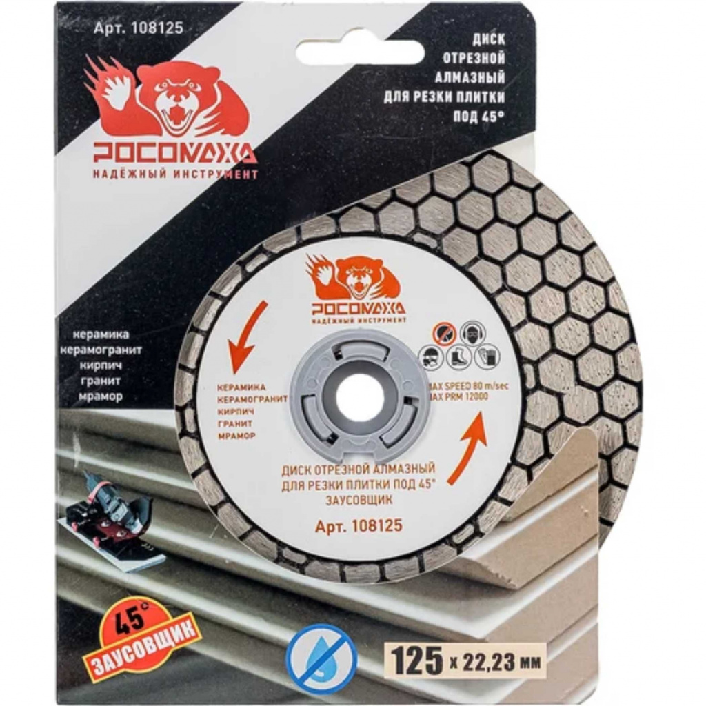 Диск отрезной алмазный для резки плитки под 45° ТМ РОСОМАХА предназначен для резки керамогранита и керамики, но основной задачей является резание керамической плитки под 45° "заусовка плитки". Дополнительно можно подшлифовать кромку торца плитки.