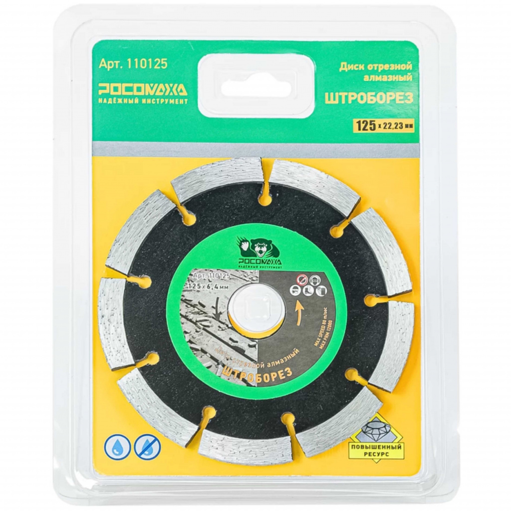 Диск отрезной алмазный ШТРОБОРЕЗ серии 110 ТМ РОСОМАХА быстро и легко удаляет старый раствор между швов в кирпичной кладке и хорошо подходит для разрезания штробы.