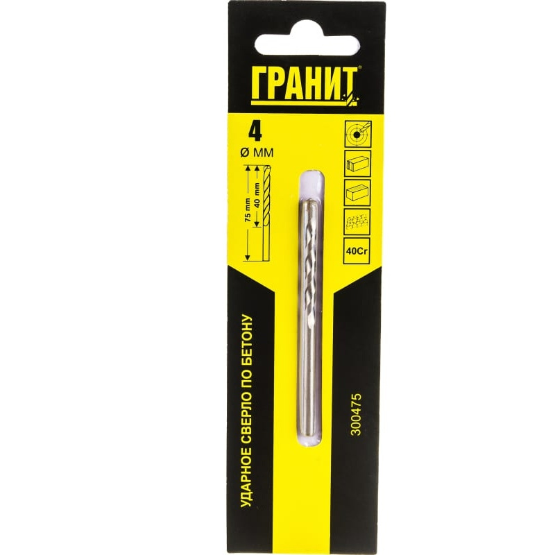 Сверло по бетону предназначено для ударных дрелей. Применяется для выполнения сквозных и глухих отверстий в бетоне и кирпиче.