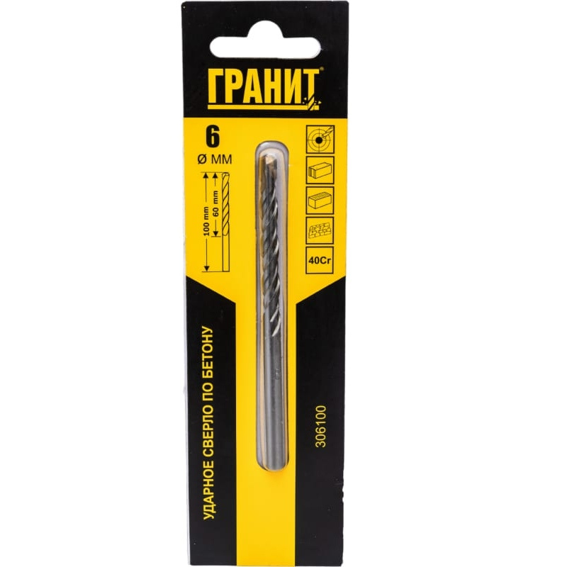 Сверло по бетону предназначено для ударных дрелей. Применяется для выполнения сквозных и глухих отверстий в бетоне и кирпиче.