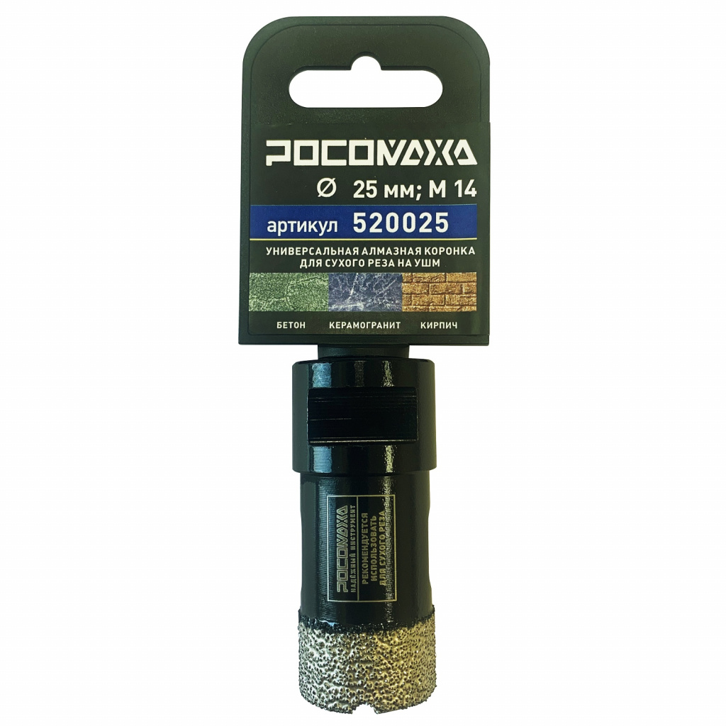 Коронка алмазная универсальная на УШМ ТМ "Росомаха" применяется для сухого сверления керамогранита наивысшего класса твердости, камня, мрамора, керамики, бетона, кирпича, ограниченного листового металла, дерева и комбинации всех этих материалов. Высокая плотность и равномерное расположение алмазов на рабочей кромке гарантируют эффективную работу и продолжительный срок службы оснастки.