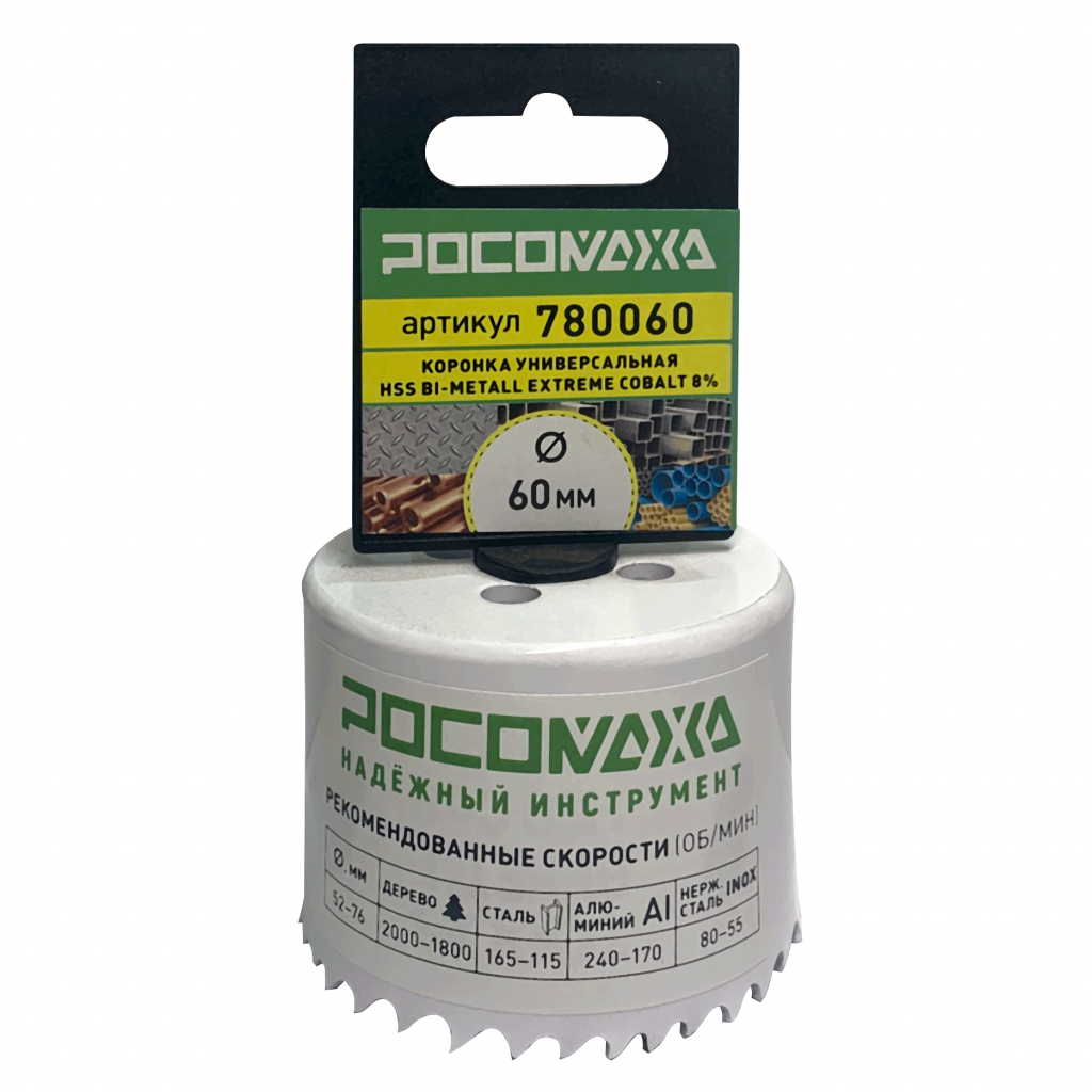 Коронка HSS Bi-Metall Extreme Cobalt ТМ "Росомаха" изготовлена из HSS Bi-Metall с содержанием 8% кобальта, что обеспечивает долгий срок службы и износостойкость. Геометрия зубьев способствует быстрому и точному резу.