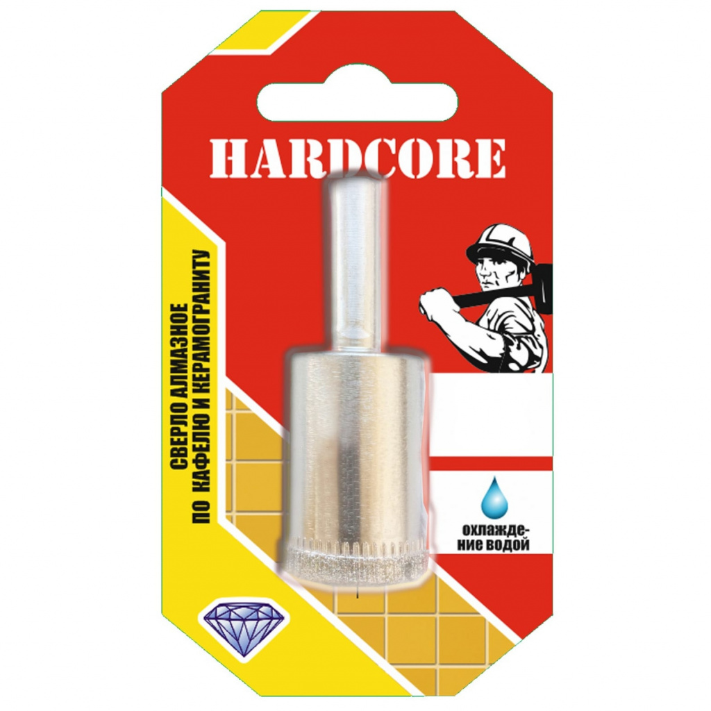 >Сверло-коронка алмазное по кафелю и керамограниту торговой марки "Hardcore" без центрирующего сверла применяется для работ по керамической плитке любой твёрдости, керамограниту и стеклу.