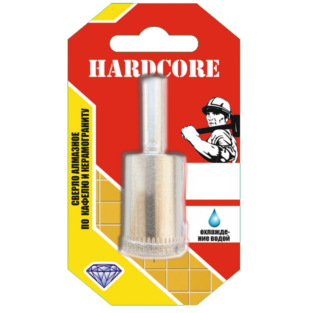Сверло-коронка алмазное по кафелю и керамограниту торговой марки "Hardcore" без центрирующего сверла применяется для работ по керамической плитке любой твёрдости, керамограниту и стеклу.