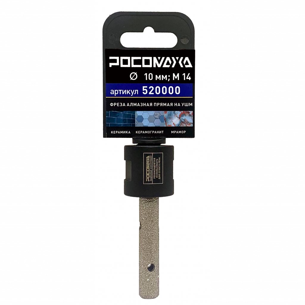 Фреза алмазная прямая по керамике, керамограниту и мрамору, диаметр 10 мм РОСОМАХА
