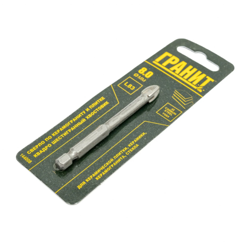 Сверло по керамограниту и плитке Квадро ТМ ГРАНИТ имеет высокую твердость и прочность.