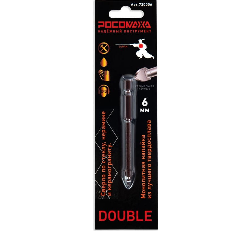 Сверло ТМ "Росомаха" имеет 2 режущие грани и используется для работы с керамической плиткой любой твердости, керамогранитом, облицовочным камнем и стеклом.