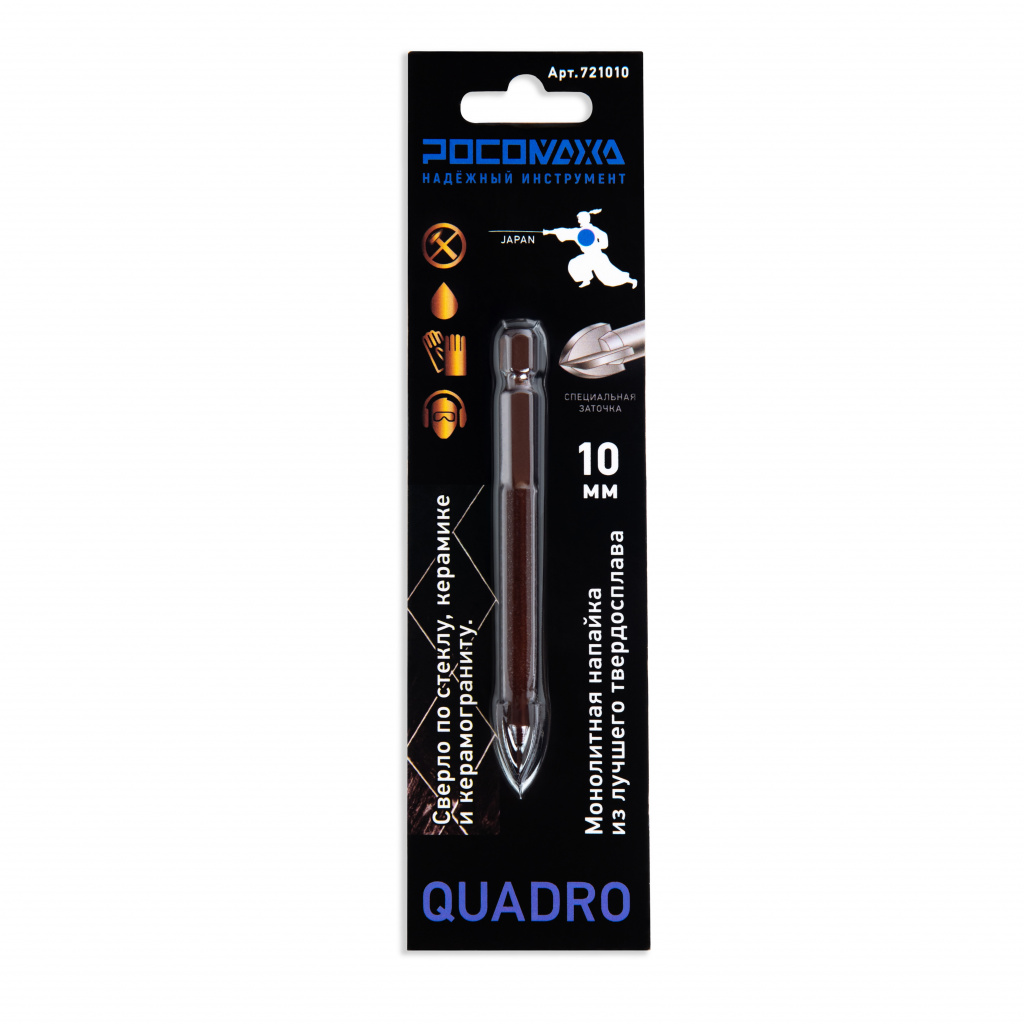 Сверло ТМ "Росомаха" имеет 4 режущие грани и используется для работы с керамической плиткой любой твердости, керамогранитом, облицовочным камнем и стеклом.