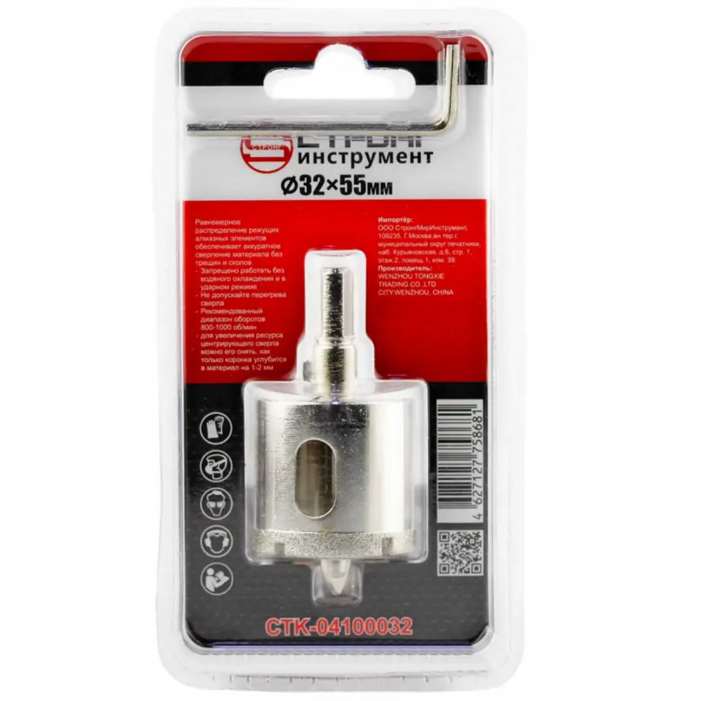 Алмазная коронка СТРОНГ обеспечивает быстрое сверление при работе с плиткой и стеклом.