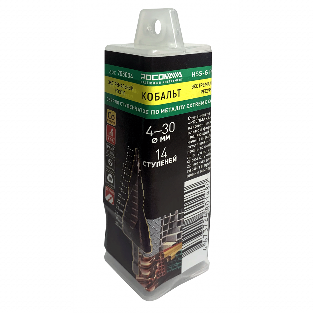Сверло ступенчатое по металлу Extreme COBALT ТМ РОСОМАХА имеет наконечник специальной формы позволяющий быстро начинать работу без "гуляния"