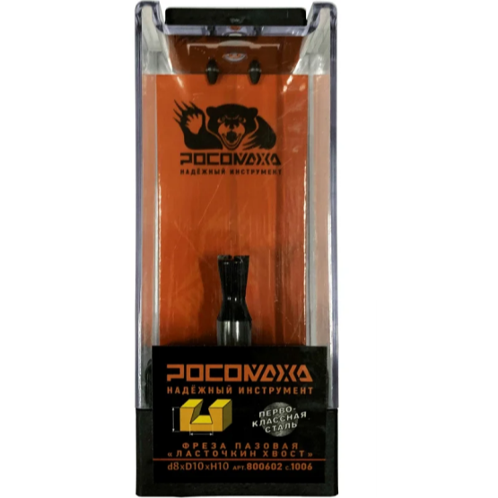 Фреза пазовая "Ласточкин хвост" серии 1006 ТМ "Росомаха" используется для выполнения сложных декоративных рисунков, а также для получения галтельной выемки по пласти, ребру и кромке изделия.