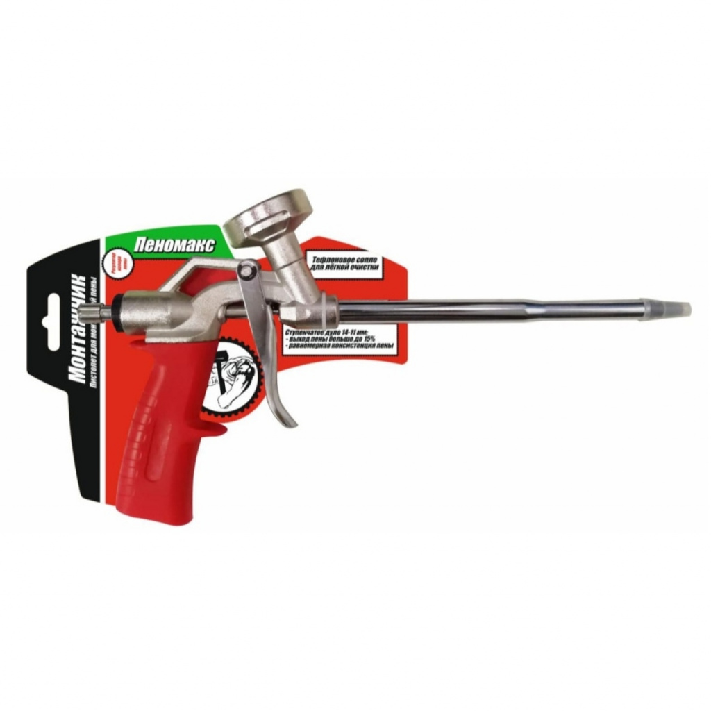 Пистолет для монтажной пены ПЕНОМАКС торговой марки "Монтажник" используется при проведении монтажных и строительных работ с целью заполнения полостей, отверстий и трещин в материалах.