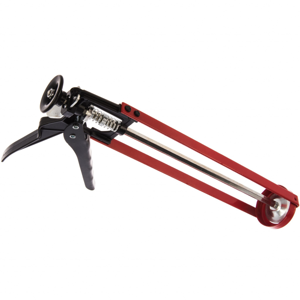 Скелетный усиленный пистолет для герметика торговой марки "Монтажник" с системой Антикапля (Non drop), которая уменьшает вытекание герметика при прекращении давления на курок - шток отводится немного назад, давление в баллоне ослабевает и герметик сразу перестаёт вытекать.