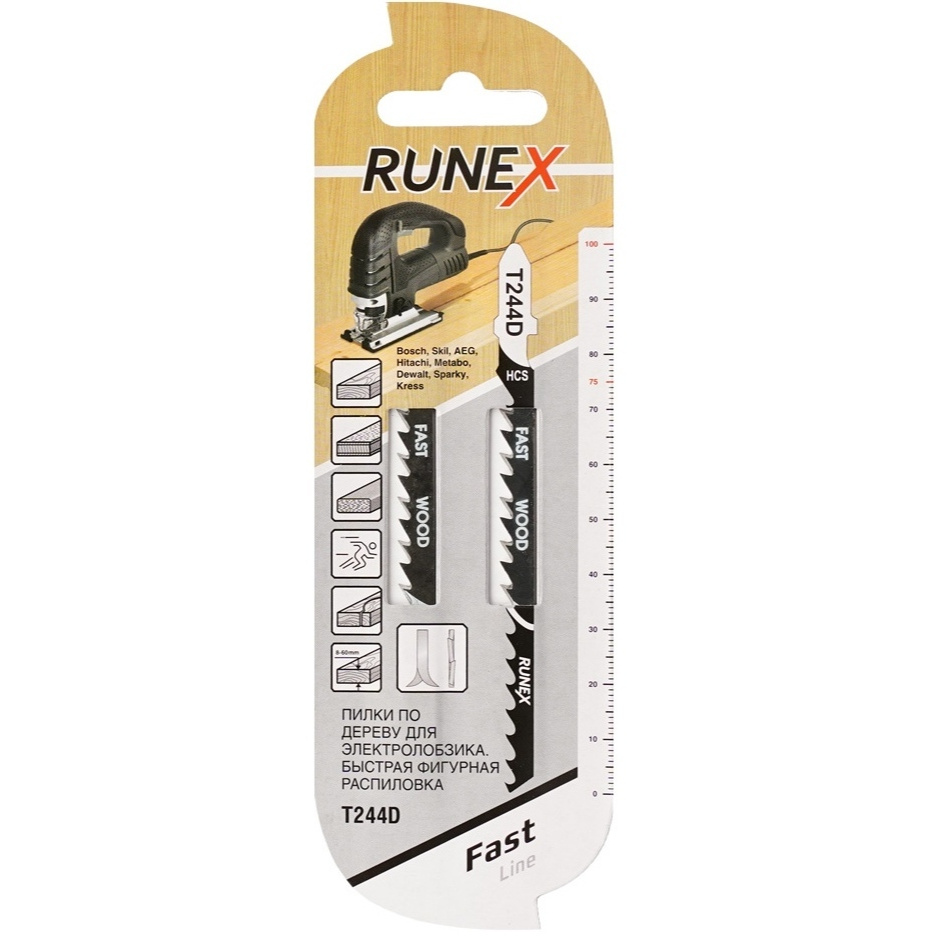 Пилки по дереву для электролобзика торговой марки RUNEX изготовлены из высококачественной углеродистой стали (high carbon steel).