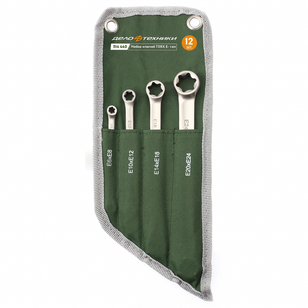 Состав набора - ключи накидные TORX: Е6×Е8, Е10×Е12, Е14×Е18, Е20×Е24; тетроновый планшет.