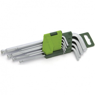 В набор входят ключи: 1/16", 5/64", 3/32", 1/8", 5/32", 3/16", 1/4", 5/16", 3/8"