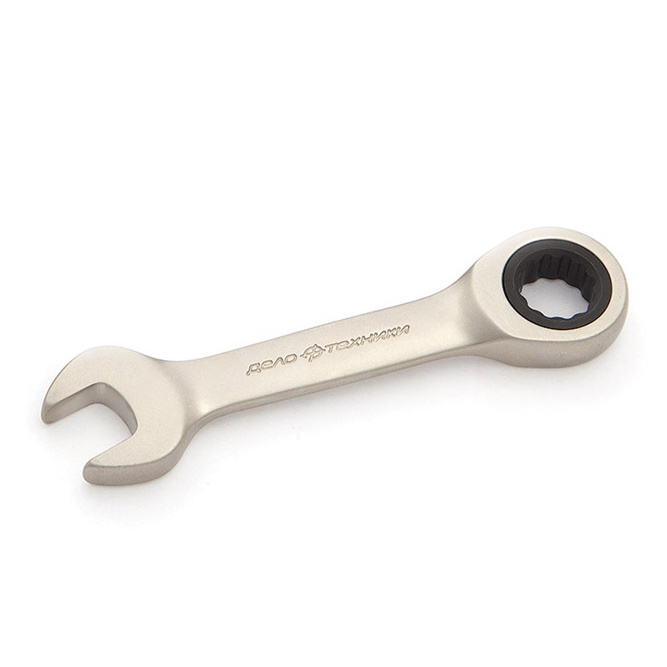 Комбинированный трещоточный ключ укороченной формы для проведения слесарных работ в условиях ограниченного пространства. Изготовлен из хромованадиевой стали с надёжным 72-зубцовым храповым механизмом в накидной части.