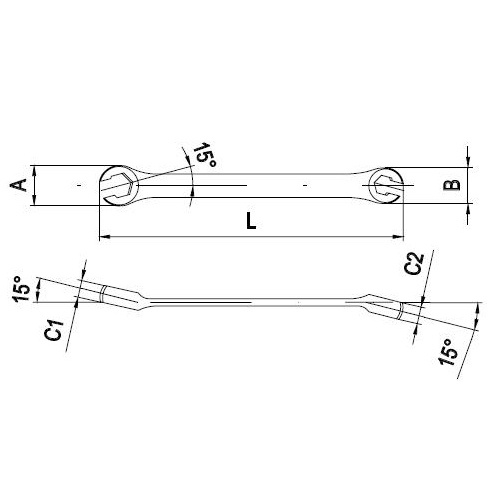 Рабочий профиль разрезного ключа смещен на 15º относительно продольной оси, что предоставляет более широкие возможности при работе в ограниченном пространстве.