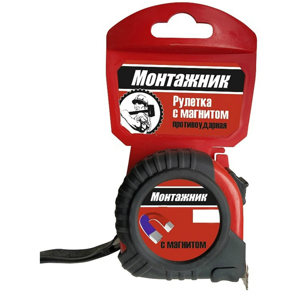 в корпусе с элементами из эко-резины без запаха оснащена отверстием для зацепа на гвоздь, с мощной возвратной пружиной. Толщина стальной ленты всего 0.115 мм, ширина ленты - 25 мм