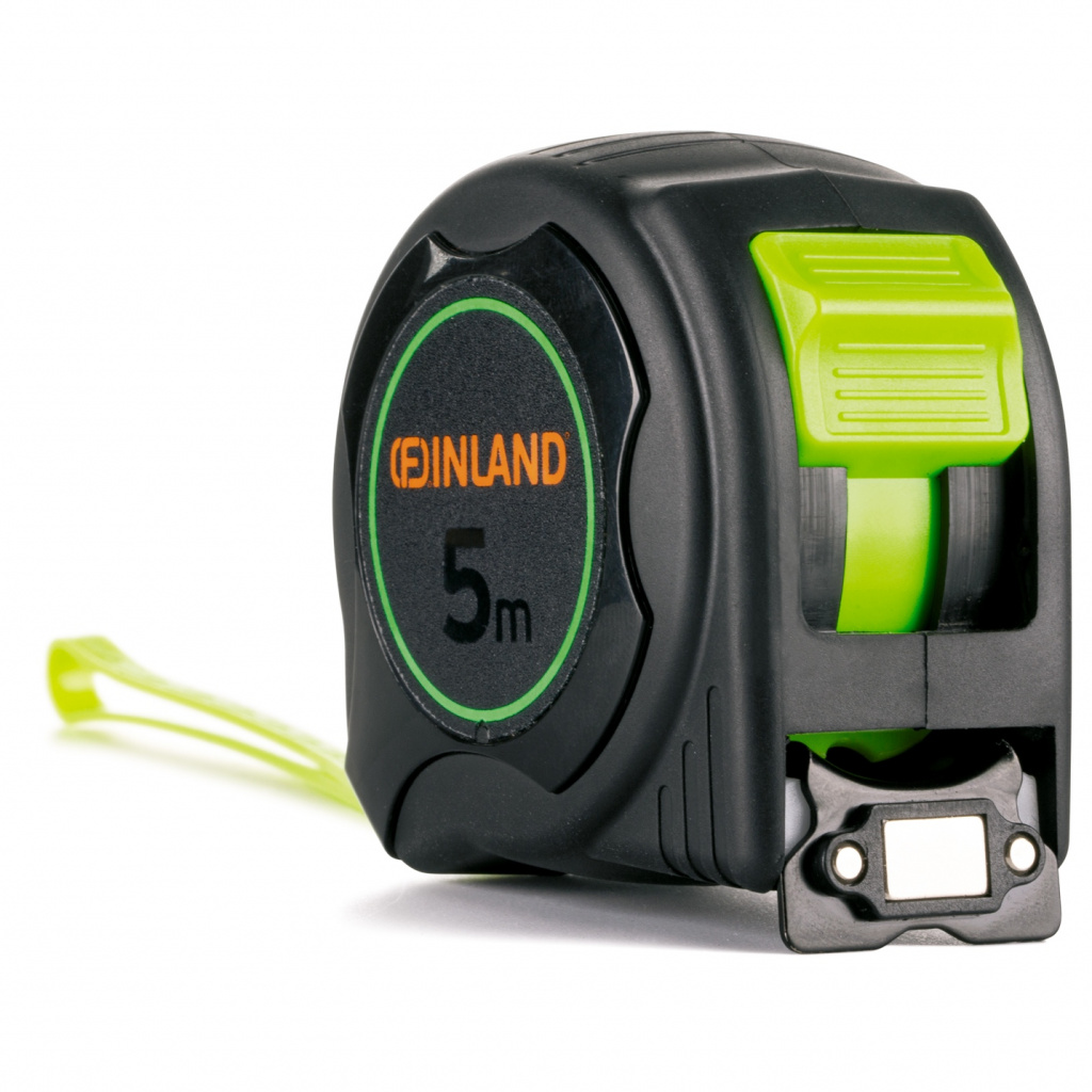 Рулетка измерительная FINLAND имеет: пластиковый корпус с резиновым покрытием; супермощный редкоземельный магнит; мощный автоматический механизм возврата мерной ленты; надёжный фиксатор для удобства проведения измерений; усиленную чернёную стальную мерную ленту; нейлоновое покрытие; двустороннюю шкалу с крупными цифрами; контрастную маркировку ленты; ремешок для переноски.